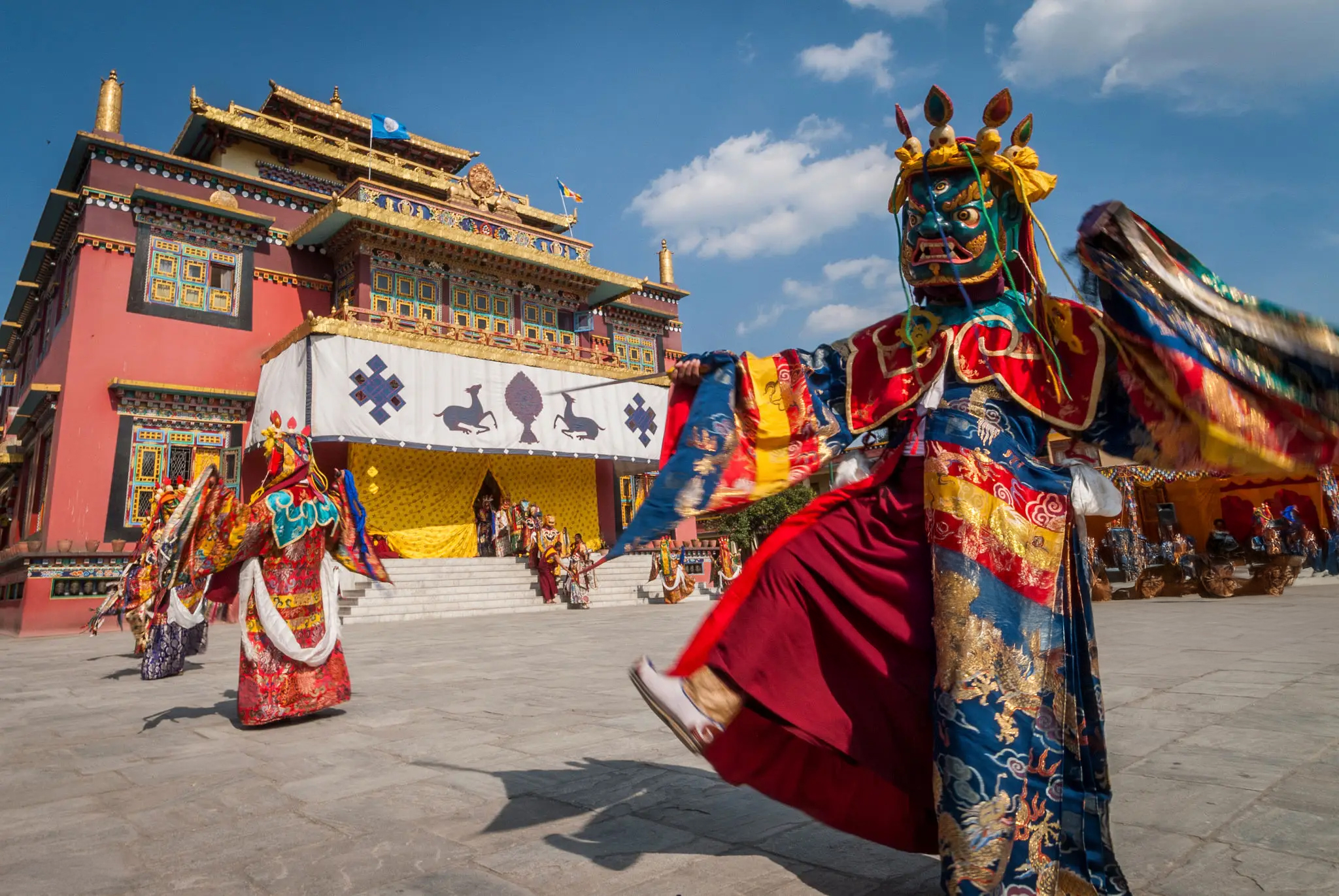 僧侶たちが鮮やかな衣装と仮面を身につけ、太鼓や法螺の音に合わせて舞う姿は、観光客を魅了するだけでなく、深い宗教的意味を持っています。